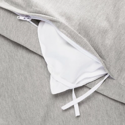 Keep their bedroom decor cute and simple with this Jersey Duvet Cover Set from Pillowfort™. This bedding set includes a duvet cover and matching sham(s) for coordinated flair. Each of the pieces features a solid gray color that brings simple flair and easy coordination to the top of their bed. The knit jersey fabric offers soft and comfortable year-round use, while the tie closures neatly secure the duvet insert. Add solid white sheets and other bedding pieces to complete their bedding ensemble, and machine wash for easy care.